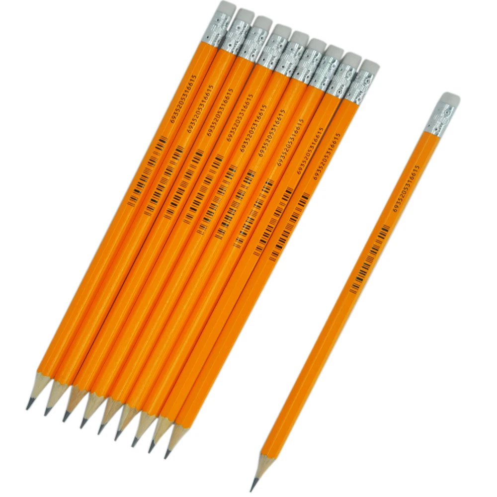 promotional logo printed pencil graphite white linden wood yellow hb pencil with muti-color ferrul pencil school hb lapiz