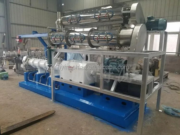Haiyuan fish feed making machine in india 3-5t/h,and our fish feed machine can produce floating/sinking fish feed,the fish feed diameter from 0.5mm to 20mm.Double screw fish feed extruder can not only produce fish feed,it is can also used for dog food(cat/dog food) by changing the die on extruder.Haiyuan Pre-conditioner(Steam)Type extruder machinery adopted advaned world technology with low repairment rate,and we have many turnkey projects for fish feed/pet food,and we can show you real customer factory demo,or take customers to visit the on-site machinery running.