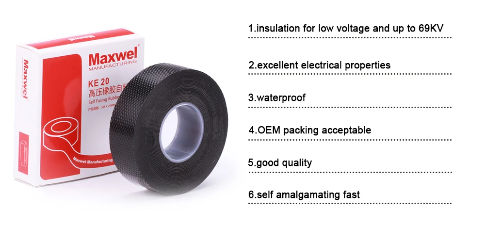 Self amalgamating pib rubber electric cable connection tape up to 69KV circuit |