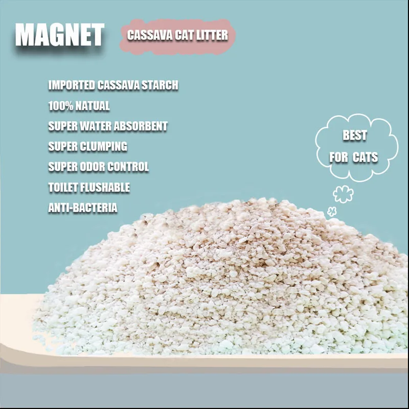 4. The molecular structure of crystalline starch cat litter will immediately agglomerate, so as to absorb urine and lock the odor. When it is discarded in water, the agglomerate will dissolve quickly, and it can be washed completely without blocking the pipeline. Lumps can also be discarded in odorless trash bags.;