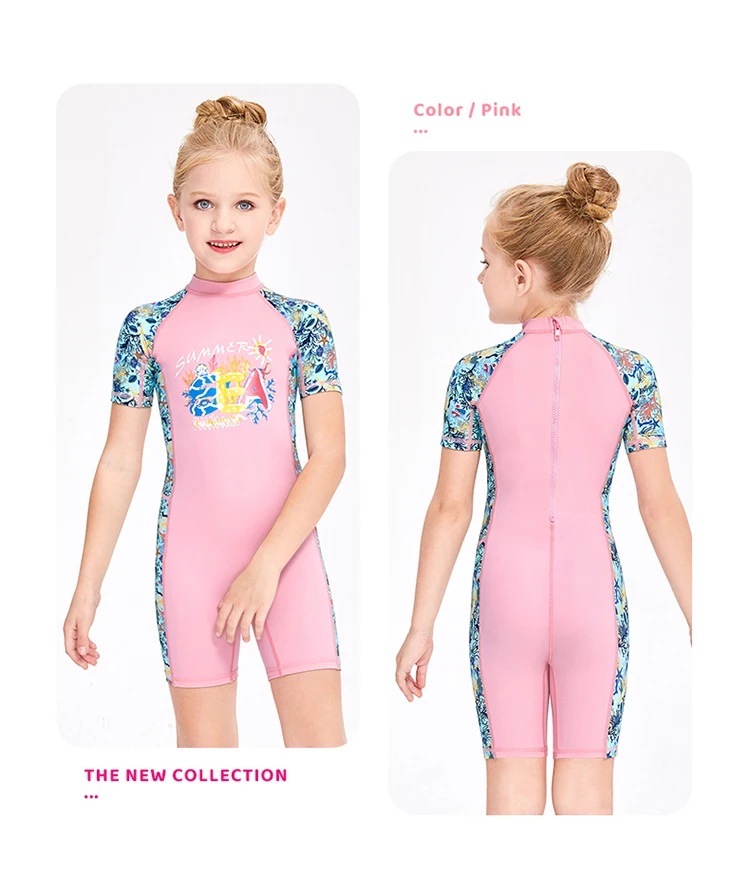 2022 DIVE&SAIL Wholesale Printed Kids Swim Wear One Piece UV Protection Rash Guard Girls Short Sleeve Swimwear