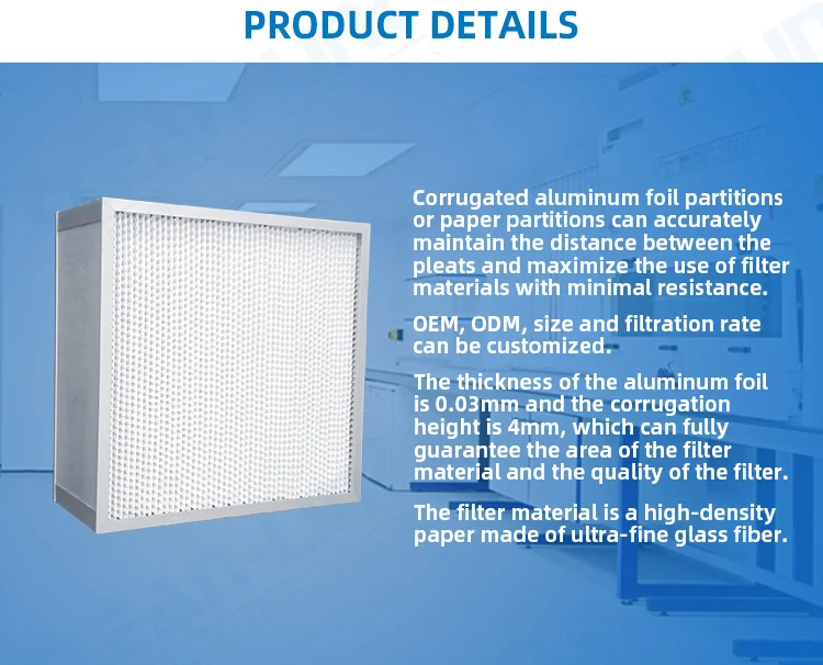 H13 | 320*320*150mm | 2.59 ㎡ | 450 ㎡/h | 1.2 m/s | 250 Pa | 500 Pa | ||||||