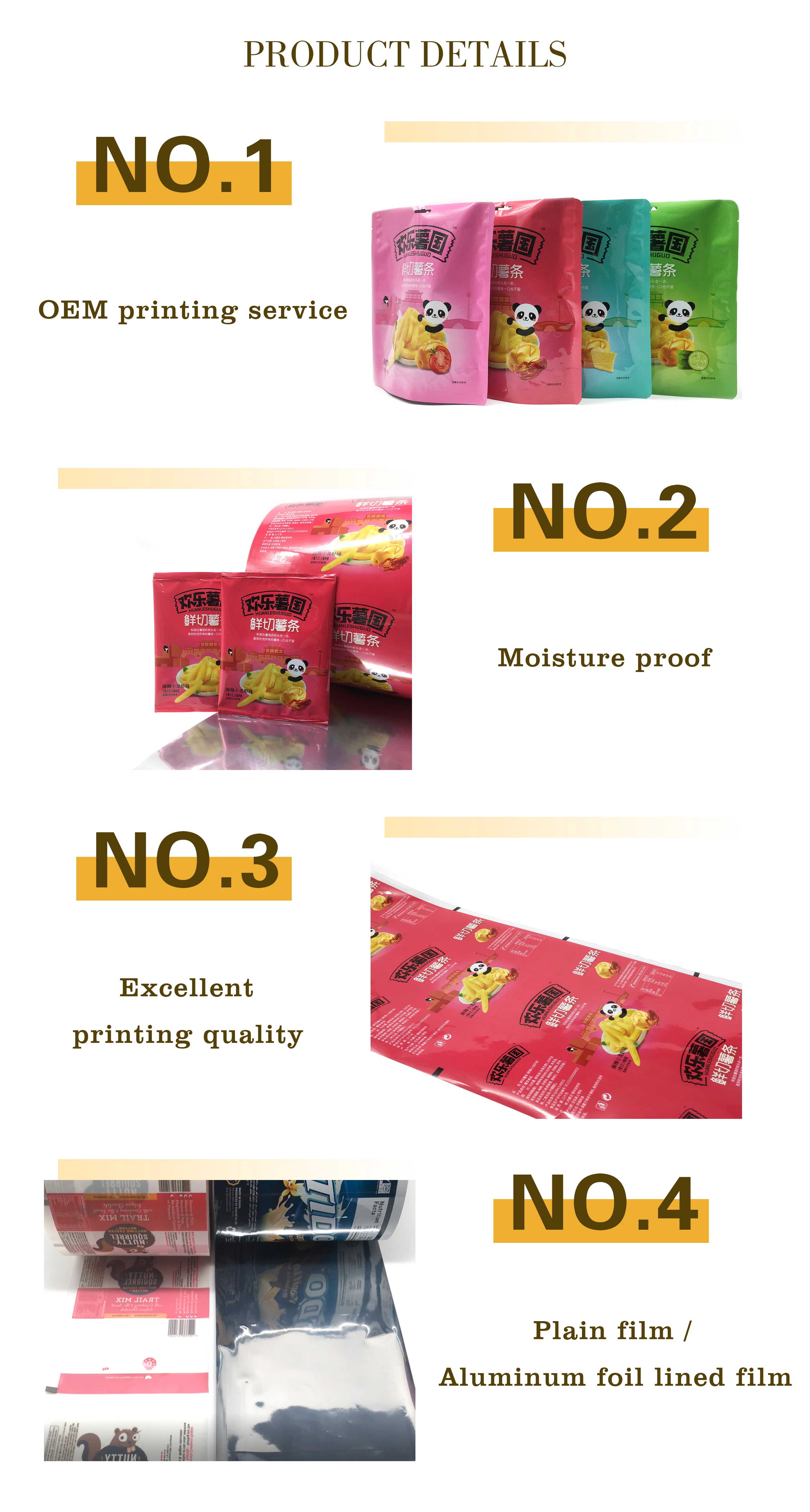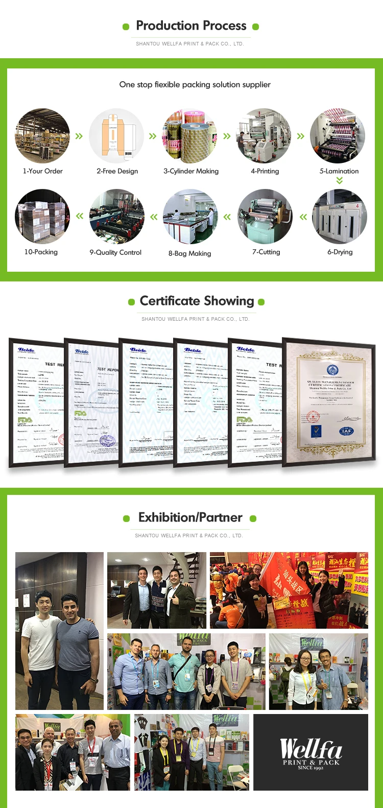 Our packaging bags are used in a wide range of industries, including food\\beverage\\pet food\\cosmetic etc. Our quality standards are certified with QS( quality safe), SGS certification.