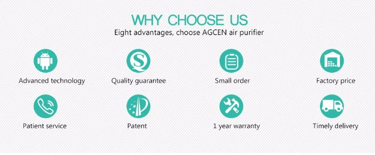 Place | 1.Remove odors, tobacco smoke, fume, food, Beverage and pet smell. 2.Eliminate dust, pollen, allergy 3.Kill bacterial, virus, germ 4.Remove formaldehyde 5.Help you breathe and live better! |