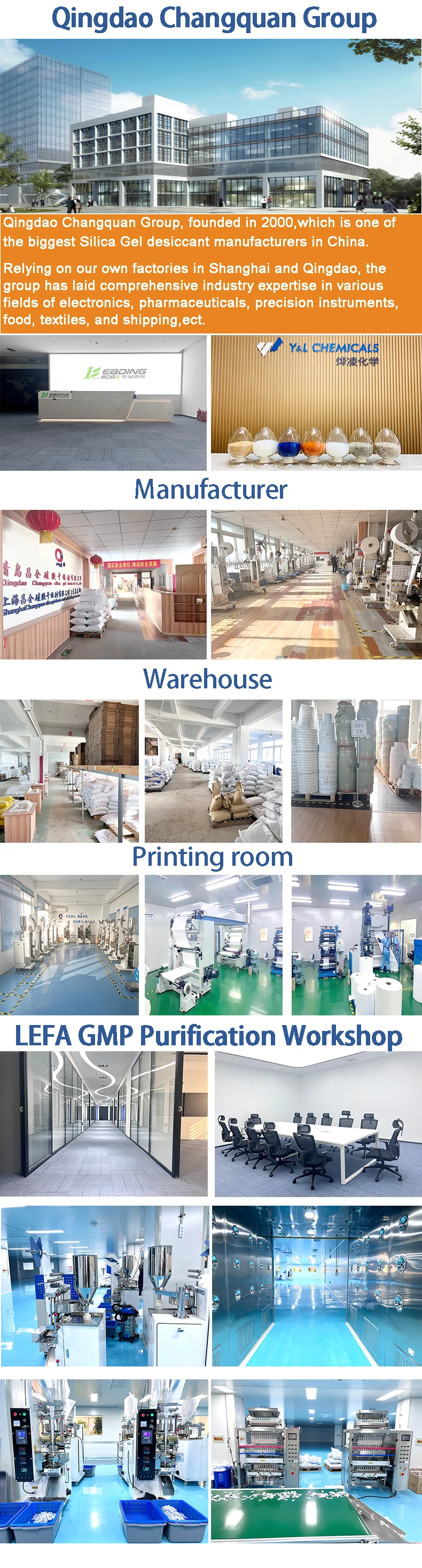 Silica gel desiccant is the most popular used desiccant in the food, drug, healthcar, electonics, clothing and textile industries as an effective way to package products.