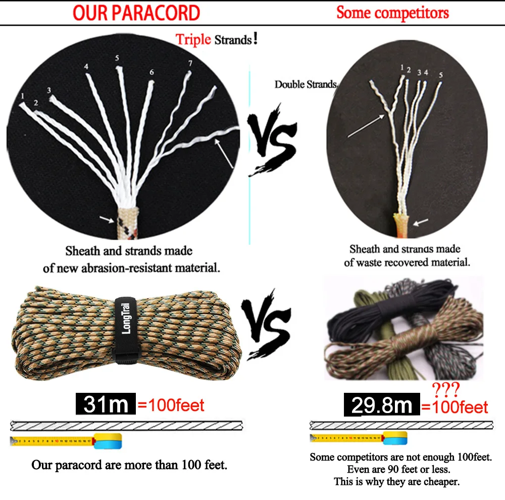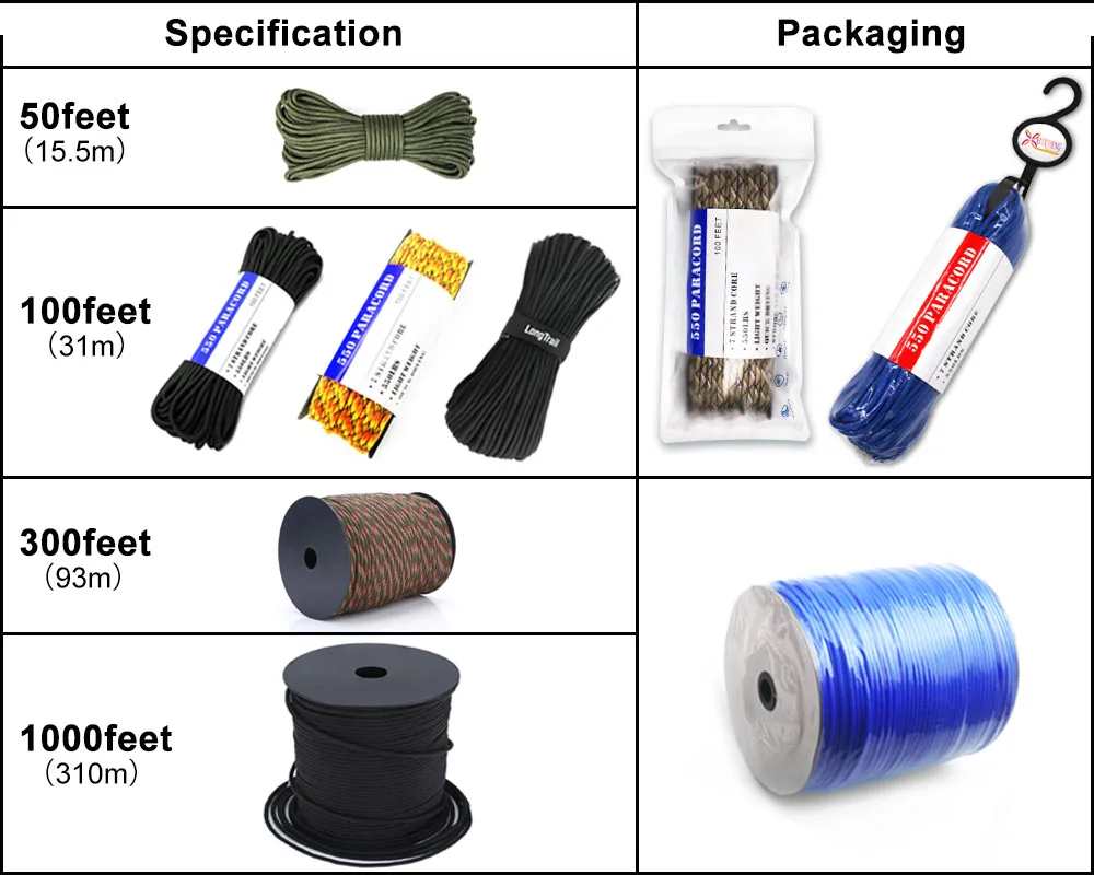 High Quality Paracord 1000Ft Spools Nylon 550 Parachute Cord Lanyard Rope