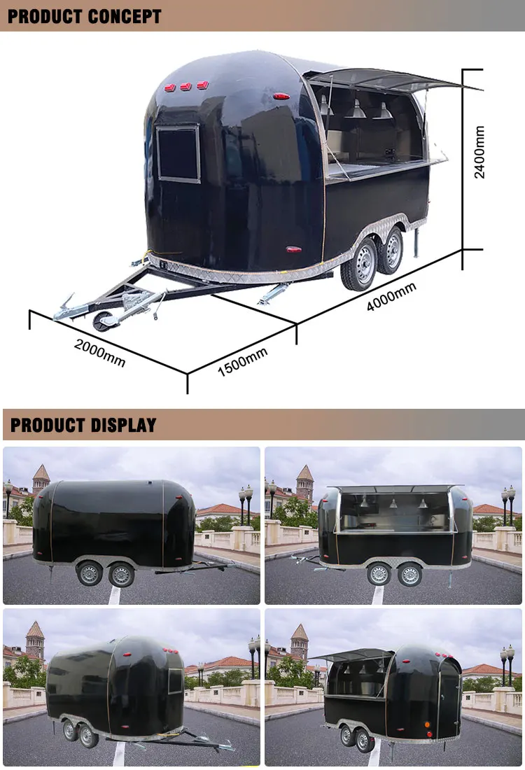 1. Our food trailer size and color is not fixed, you can customize your own size and color.