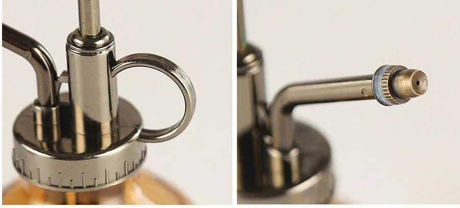 * SMALL SIZE WITH LARGE CAPACITY - Only 15.1cm Tall ,8.4cmDiameter with180ml, enough for indoor plants like succulents or air plants * MULTI PURPOSE - Ideal for watering small plants inside your home and office. Not only for spraying plants, but also can be used for Personal Cooling, Pet Cooling, Windows/Table Cleaning, As a Decoration on Table and so on * COMFORTABLE DESIGN - Easy to use top pump & the ring-finger holder makes misting your plants easy and convenient * DECORATIVE -The beautiful spray bottle brings vintage style charm to your home, patio, or office. * LIGHT WEIGHT - Only weight 7 Oz, just using your fingers to watering small plants inside your office and home.