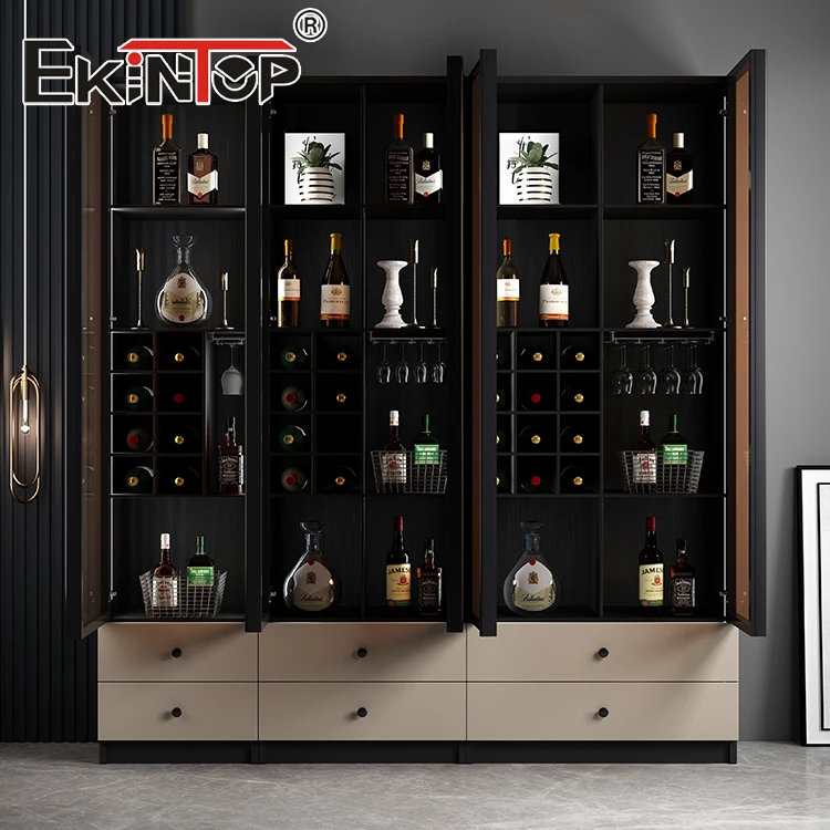 Ekintop Luxury High Quality Living Room Furniture High Gloss Cabinets Commercial bar Cabinet Whiskey bar Set