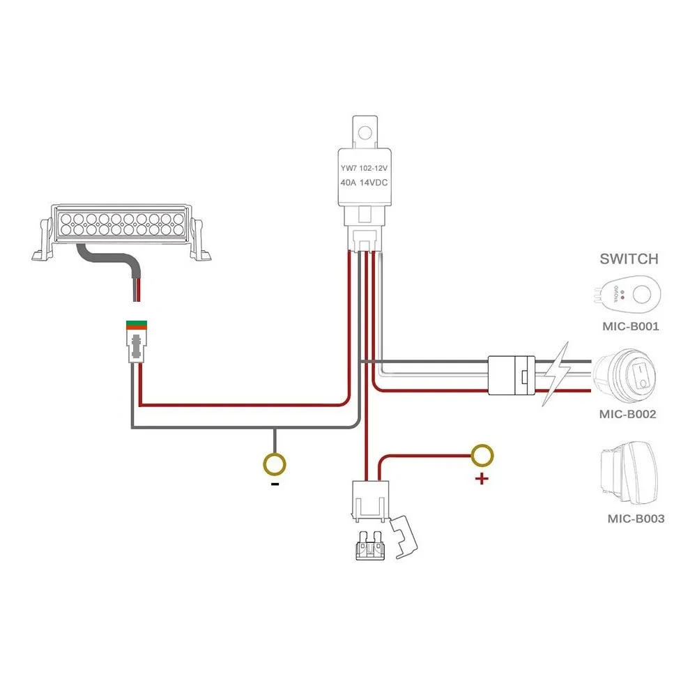 14AWG DTP Connector Wiring Harness Kit LED Light Bar 9-32V On Off Switch Power Relay Blade Fuse for Off Road Laser Driving Light