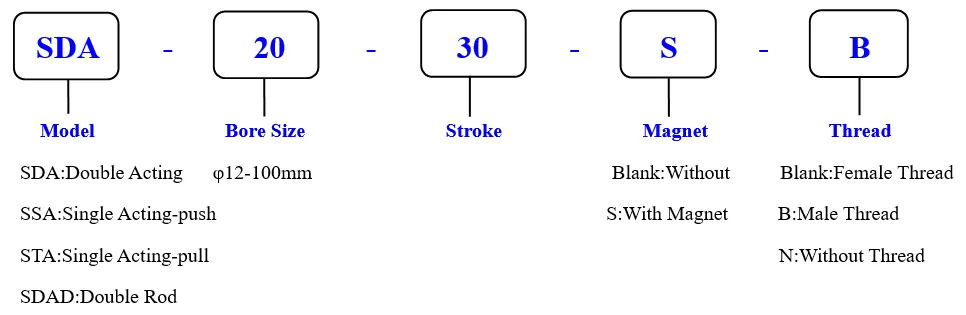 5: The compact structure of SDA series cylinder can save the mounting space effectively;