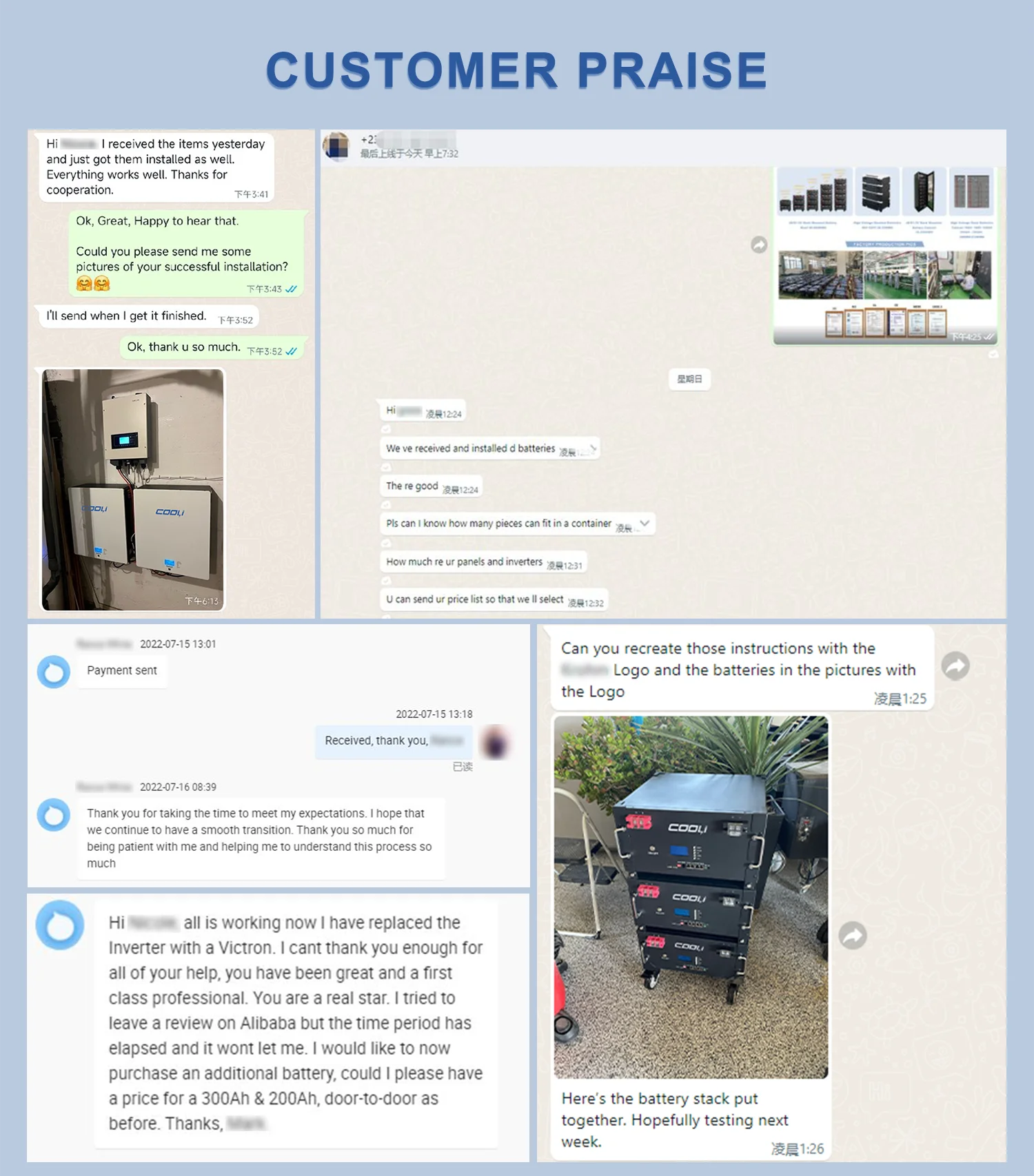 Cooli Home Lifepo4 Battery Power Wall 10KW 15KW 20KW Li Battery Pack Power Wall 24V 48V 200AH Lithium Battery | ||||||||