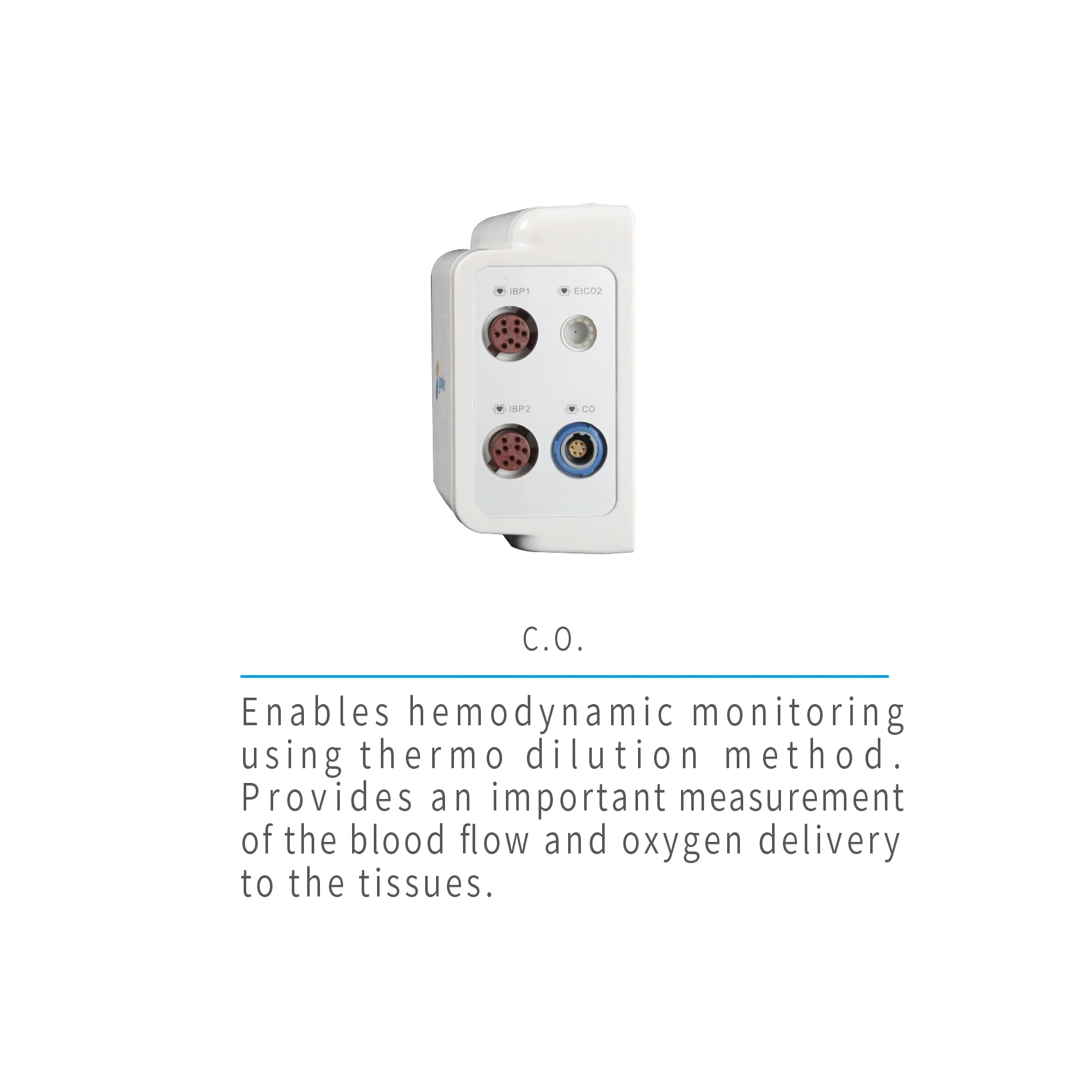 * 3-level audio/visual alarms. Efficient resistance to interference of defibrillator and HF knife.