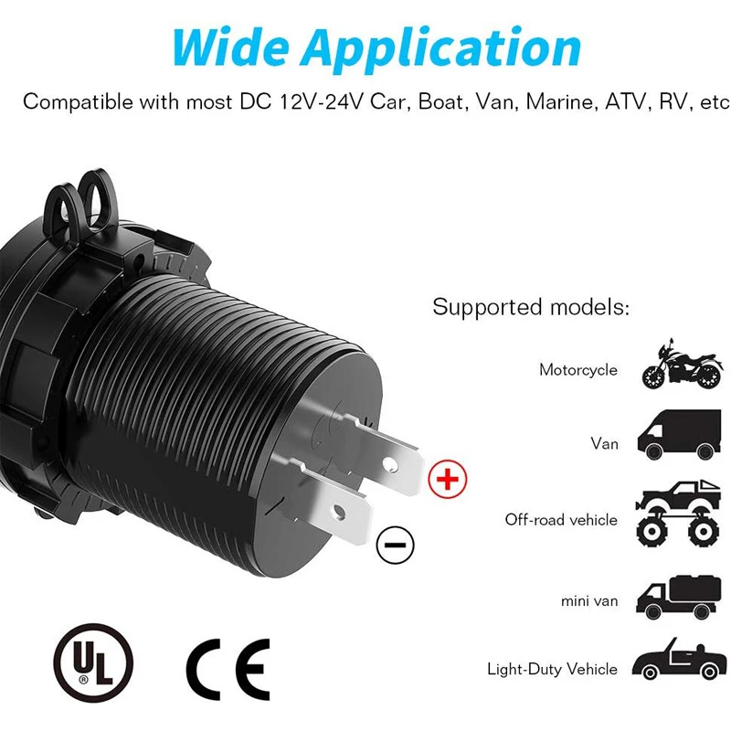 Compatible with #2 | 12-24V car, bus, boat, marine, motorcycle, ATV, bike scooter etc. |