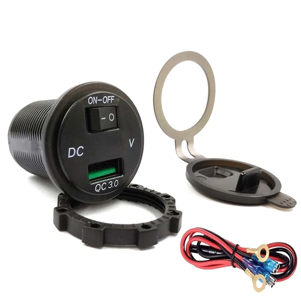 12v power socket motorcycle with switch and QC3.0 port + voltmeter