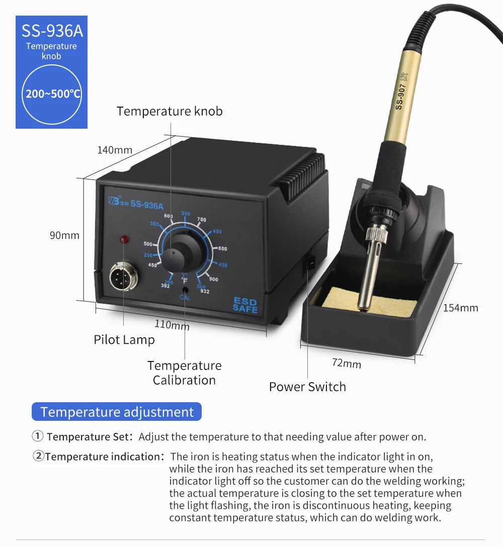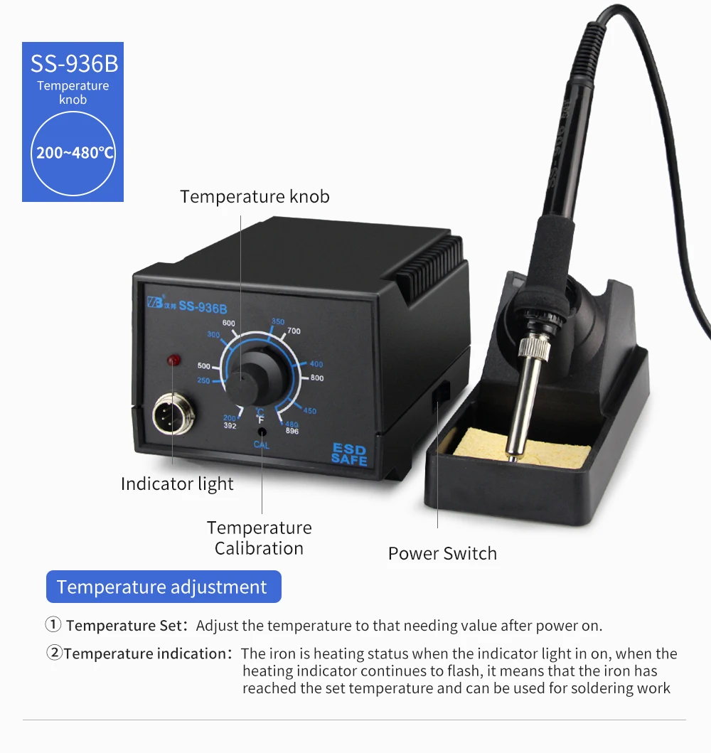 936A soldering iron station solder rework station Operating temperature adjustment