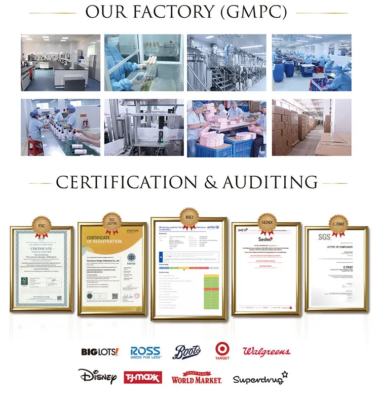 Certifications | BSCI; FSC; ISO22716; SEDEX; C-TPAI and Industry related certifications |