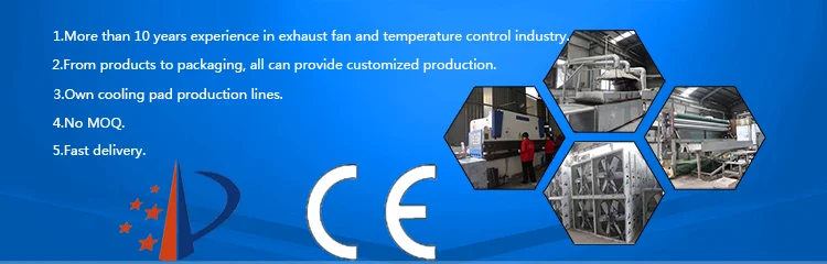 A:Usually,MOQ of exhaust fan and air cooler is 10 sets, MOQ of cooling pad is one 20’ container. Small quantity we also can do ,but the cost will be high.