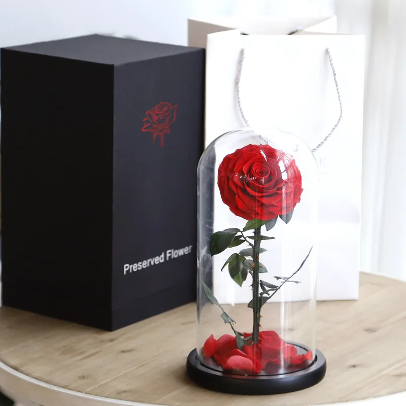 Size | 15*30cm glass dome; 7-8cm presrved rose heads; tiffany material gift box |