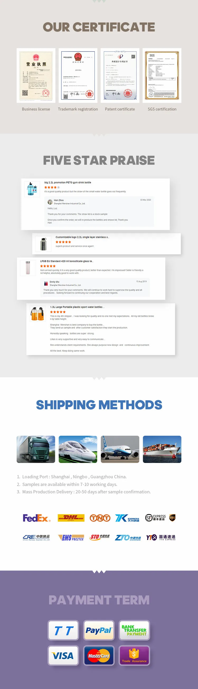 Printing | Silk printing, transfer printing, UV printing |