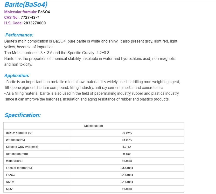 XiMi is a professional large scale manufacturer of all types of barite ,barium sulfate, including natural grade, precipitated grade and coated grade.