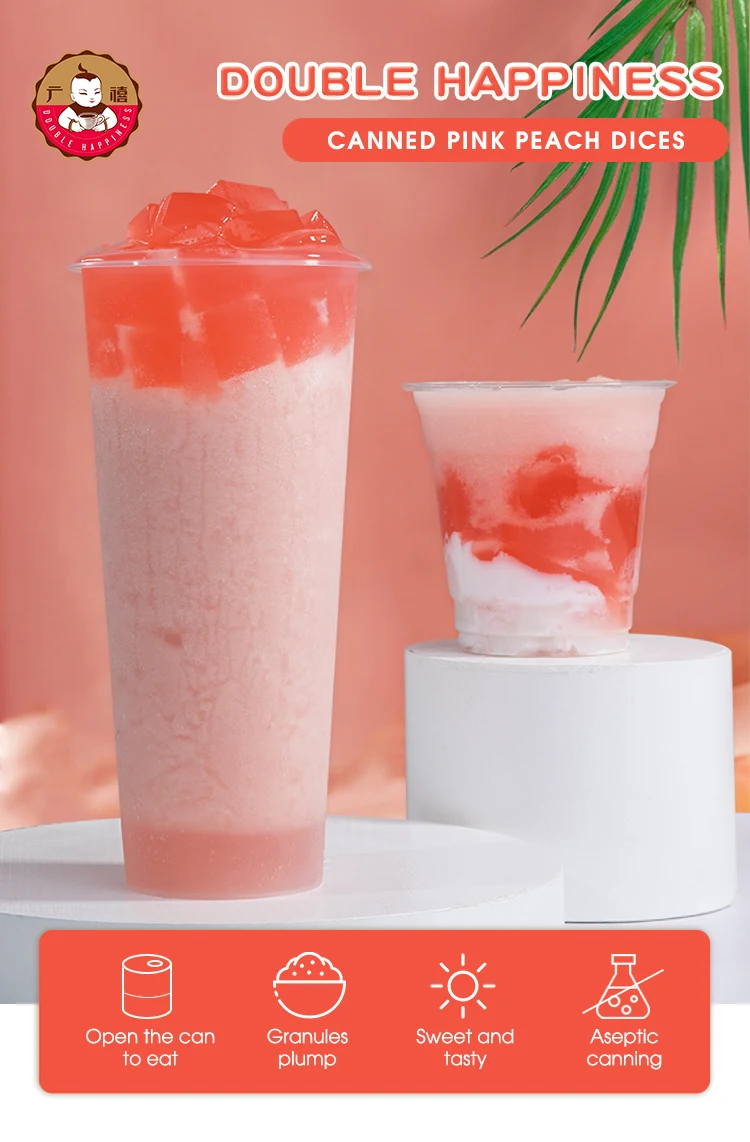 2022 New Product Canned Pink Peach Dices for Bubble Tea Shop Fruit Tea Raw Materials