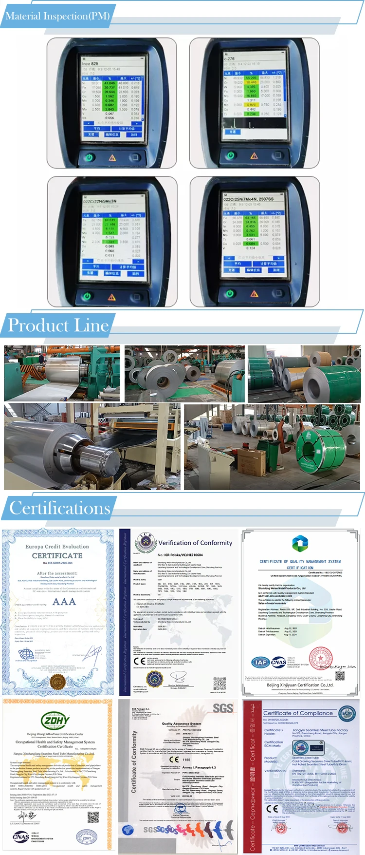 Shandong Puxiang Iron and Steel Group Co., Ltd. was established in 2013 and is located in Liaocheng City, Shandong Province which is China's largest stainless steel production base. It mainly produces stainless steel plate, stainless steel pipe,stainless steel coil,stainless steel channel ,carbon steel plate,carbon steel pipe,carbon steel channel, H beam, I beam,galvanized products, aluminum products and other metal products. The company adheres to the concept of "people-oriented, dedicated and innovative"and always pursues challenge and insists on providing our clients with best quality, reasonable price and careful service.In order to guarantee the quality of the products, the company introduces the advanced testing equipment and builds up a professional scientific research team, strictly control the quality on each steps of production including inspection on raw materials entry, product's color analysis during production,T-bend test, impact test, salt-spray test, tensile test and packaging test on exported products , which ensures its integrated performance such as corrosion resistance, coating stickiness and the safety of transportation. Puxiang products are widely used in automobile, home appliance, home decoration, solar energy, construction and other fields.