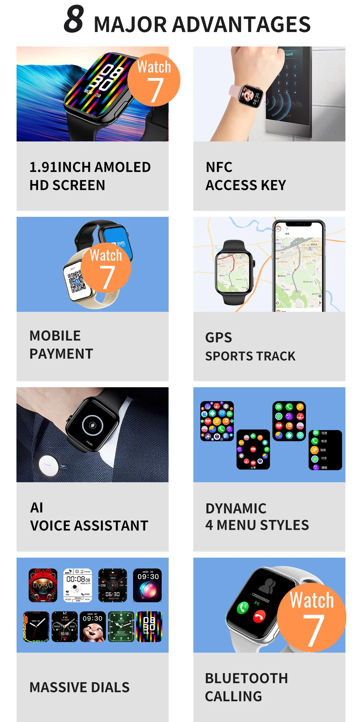 Buying points | BT calling, multi watchfaces, Rotating Menu, NFC |