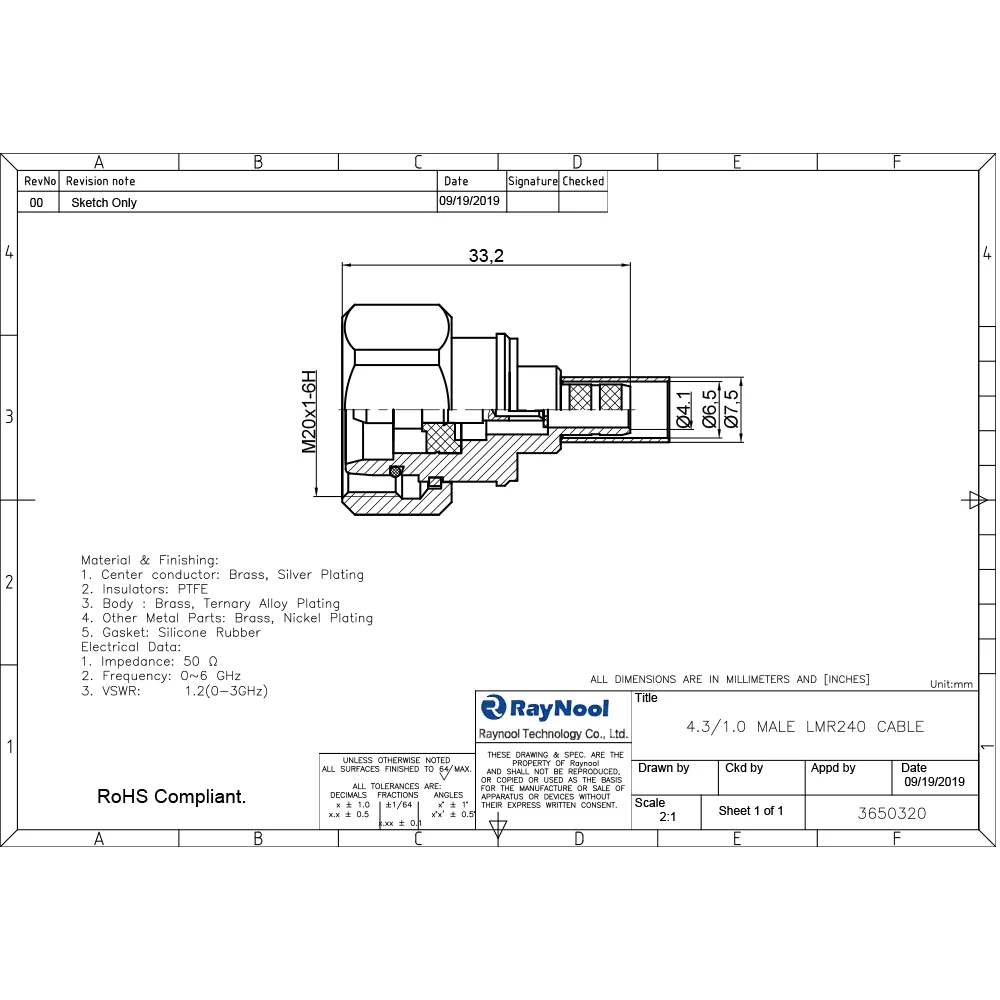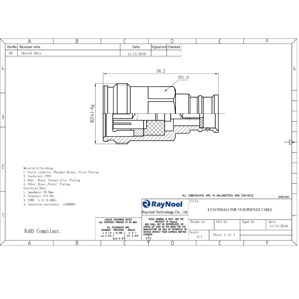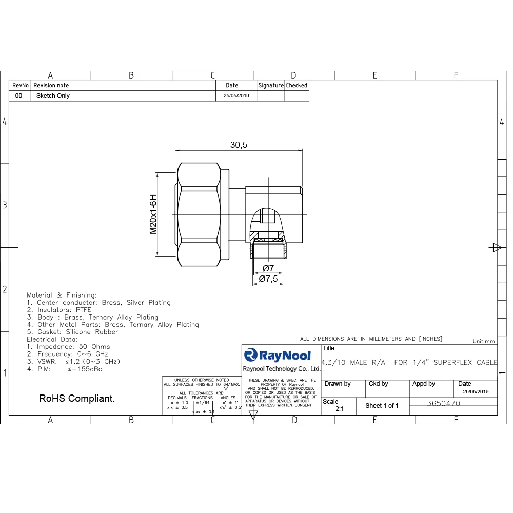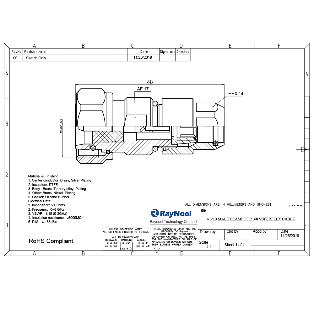 Raynool technology Co.,ltd has Its own R&D team ,and focuses on manufacturing RF connector, Cable assemblies, high speed cable assembly, and accessories for Wireless Infrastructure.