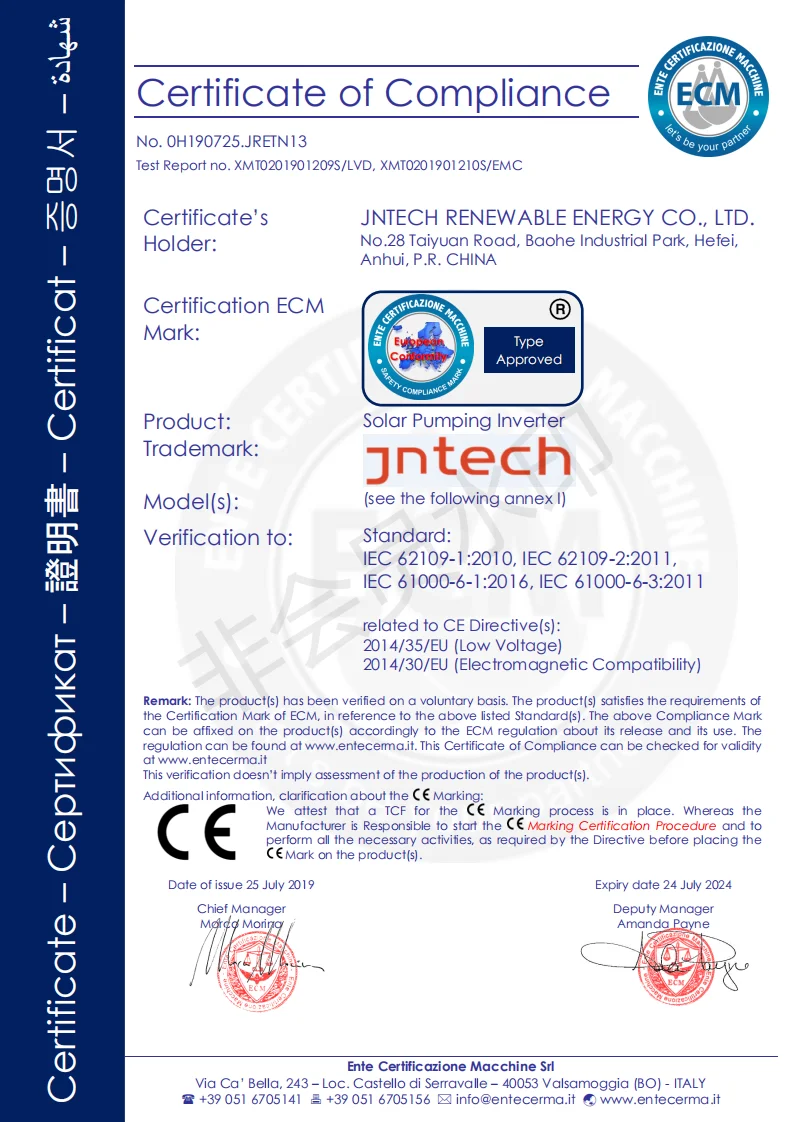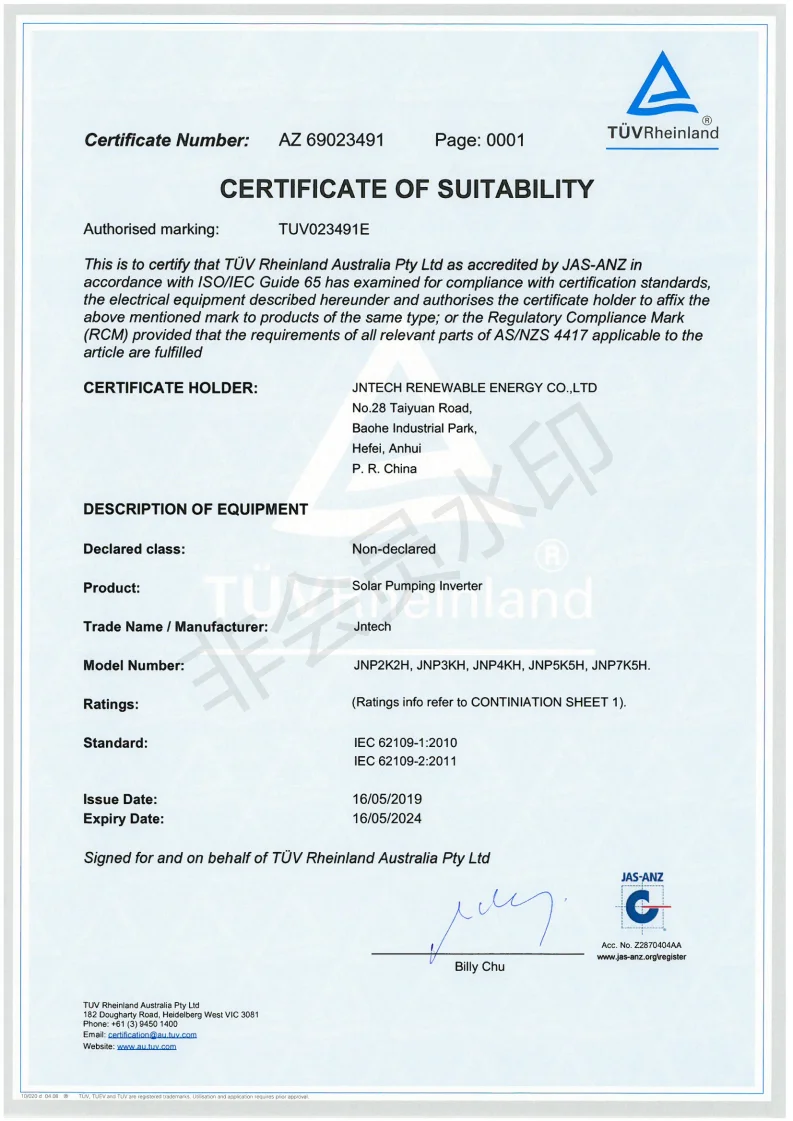 JNTECH developed solar off-grid inverter, solar pump inverter, solar floating platform and relative solar products all have passed national or international certification, already have been widely used in more than 60 countries worldwide.