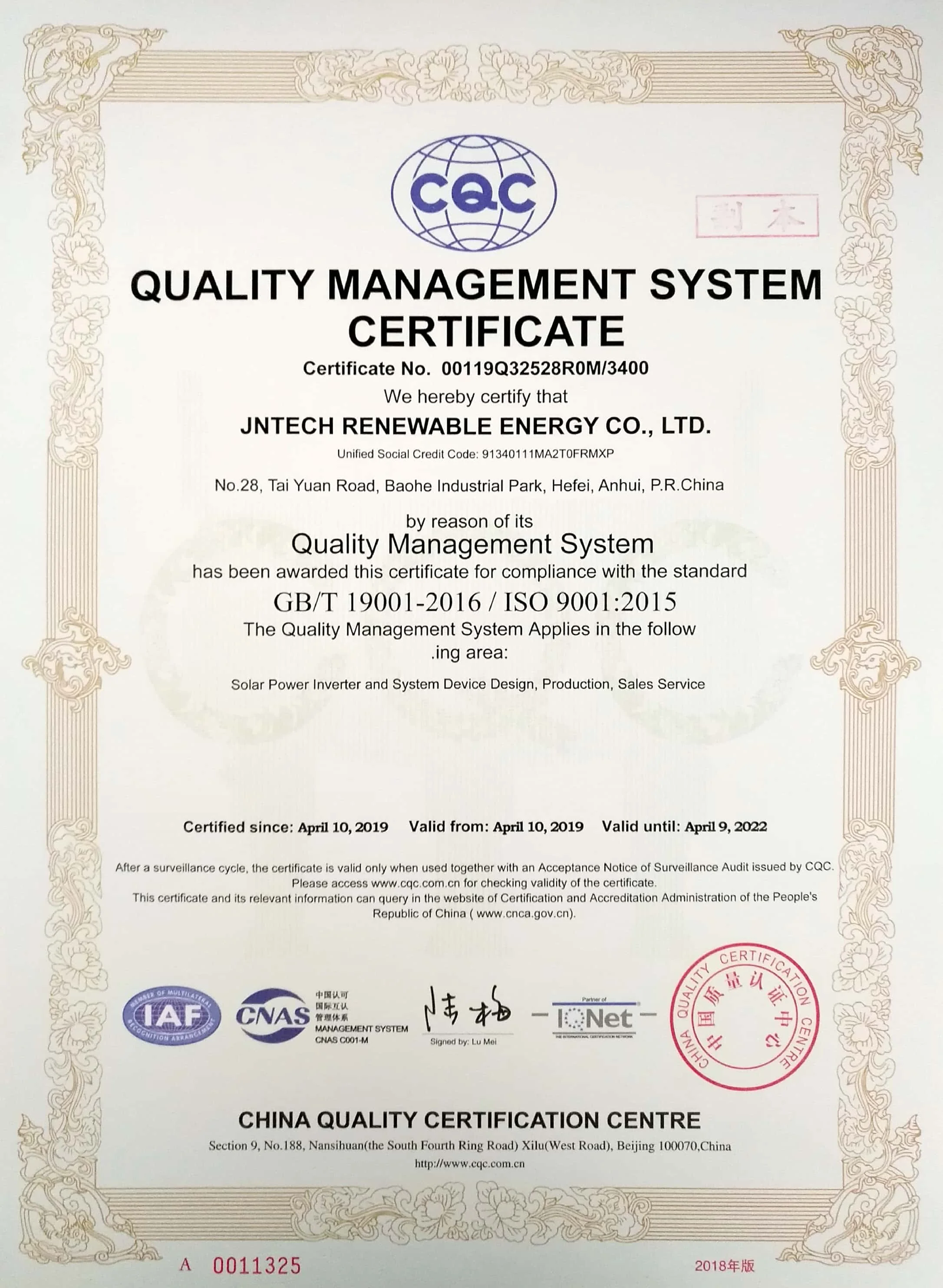 JNTECH RENEWABLE ENERGY CO.,LTD, affiliated to HEFEI JNTECH NEW ENERGY CO.,LTD, is a dependent corporation by the merger of mother company’s renewable energy application product division and research institute.