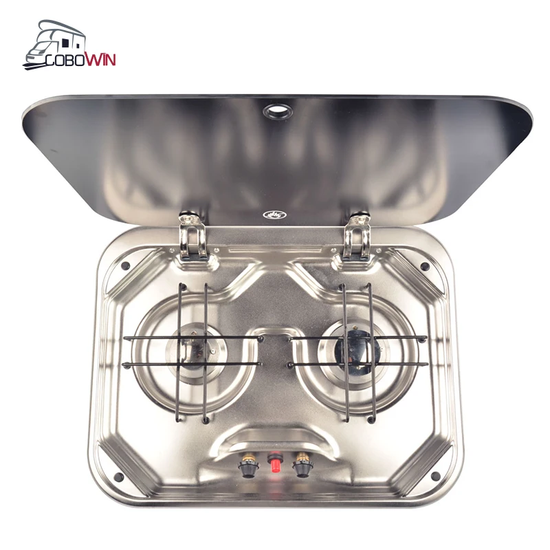 Stainless Steel RV Gas Stove Cooker With Cover For Caravans Folding Glass Lid Kitchen Double Burner Gas Stoves For Motorhome
