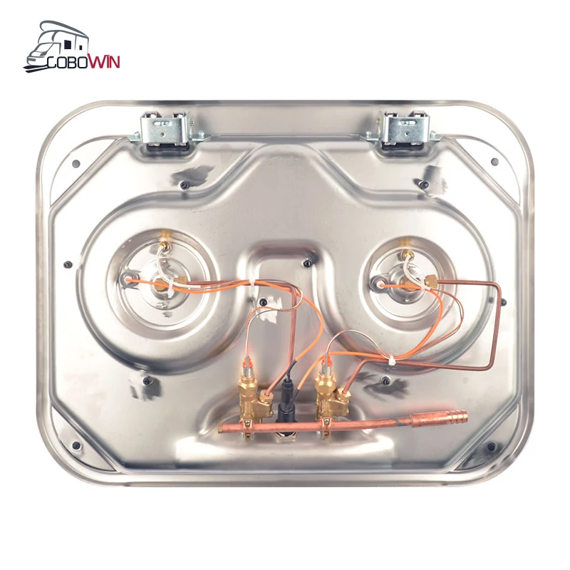Stainless Steel RV Caravan Folding Glass Lid Kitchen Double Burner Gas Stoves For Motorhome