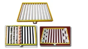 <<< Chicken egg tray, bird egg tray, duck egg tray, goose egg tray, pigeon egg tray are all made of plastics, they are replaceable.