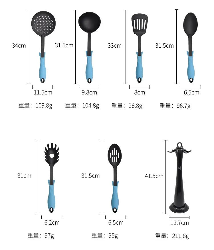 Item name | 6 pieces kitchenware cooking tools high quality PA66 nylon kitchen utensil set with plastic holder | |||||