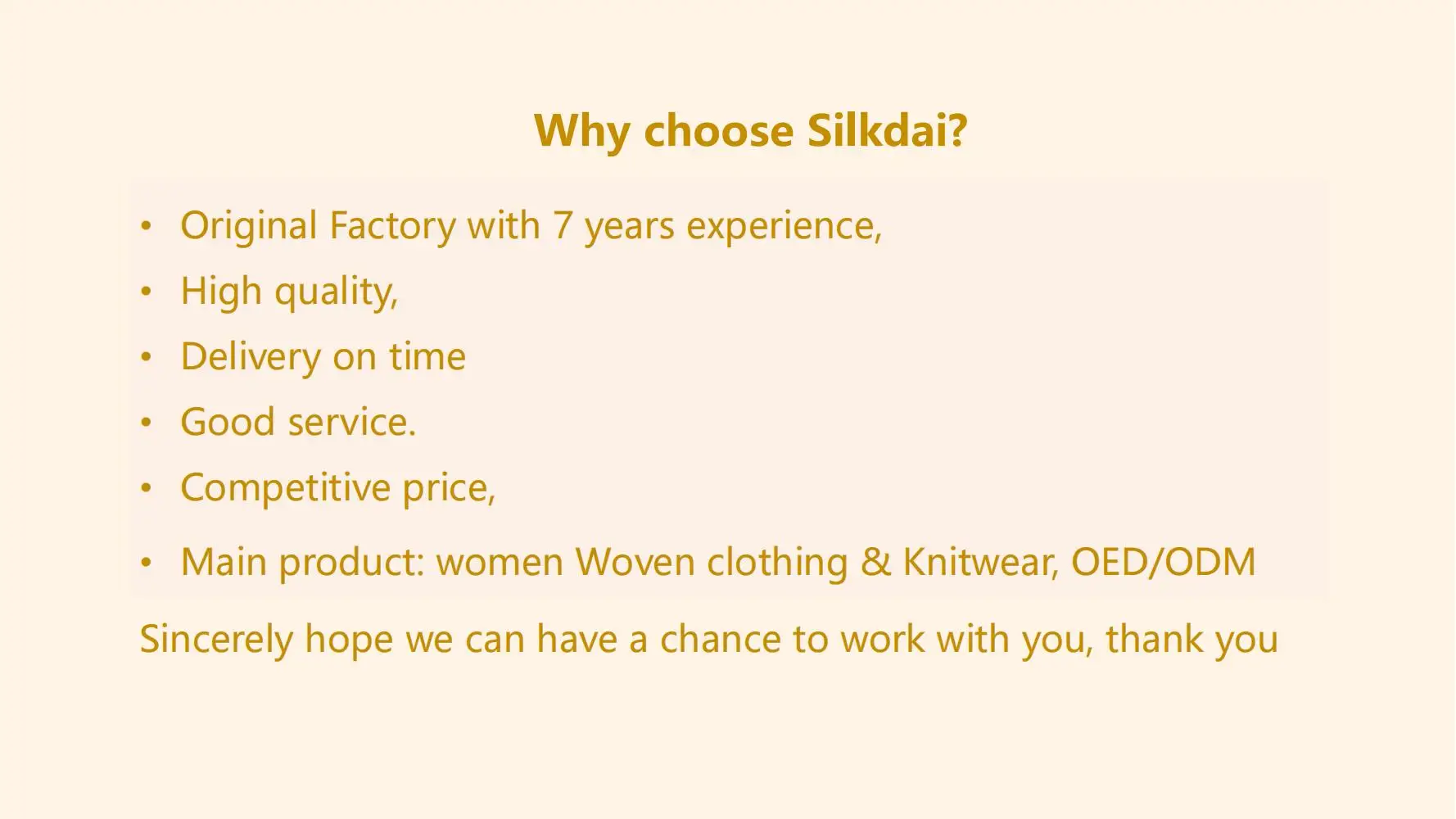 Supplier Name | Silkdai |