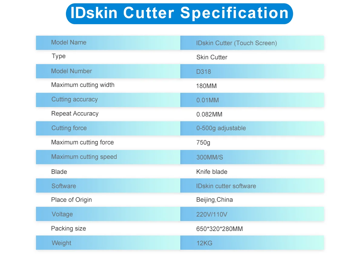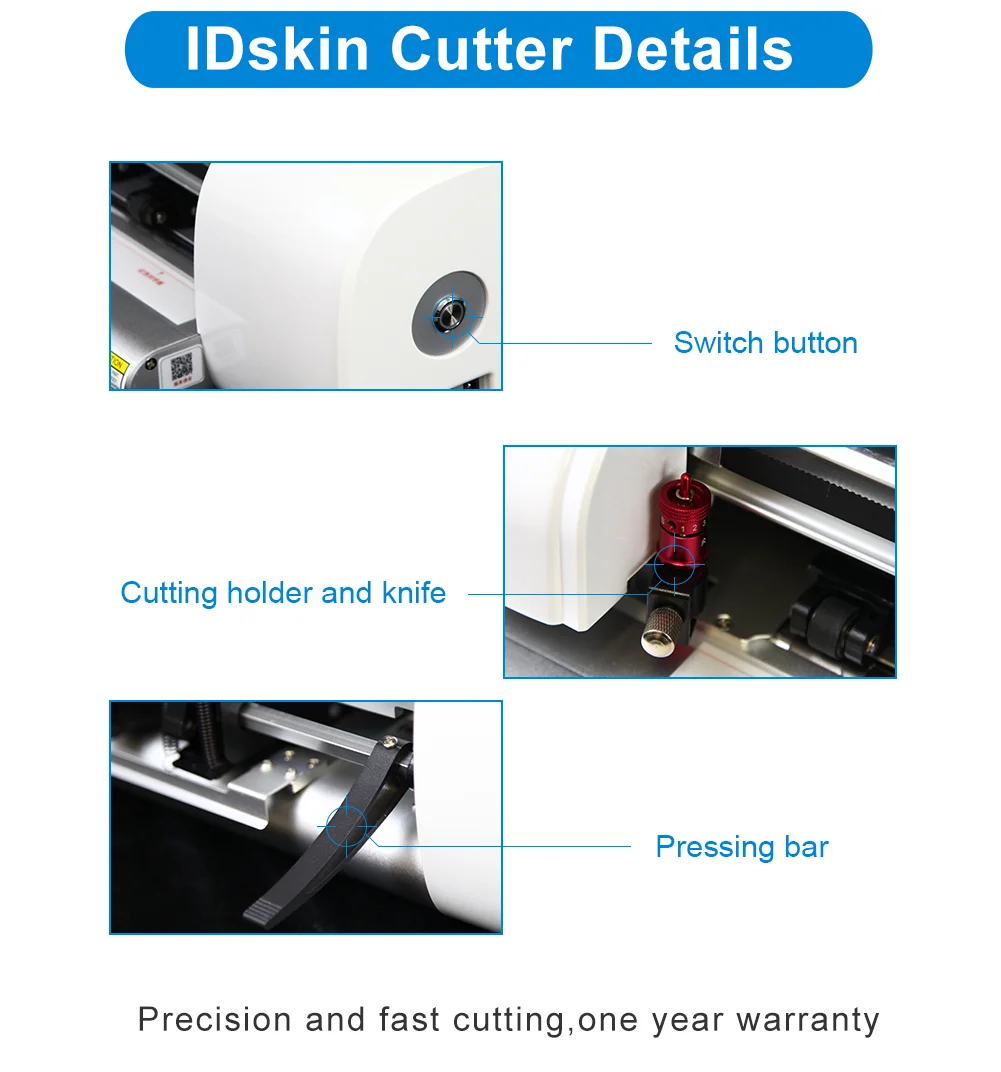 * 6. Does IDskin support OEM? Yes, Daqin as the manufacturer, provide OEM service for IDskin cut system, such as customize the machine color, software interface, film material water mark and packing box appearance.