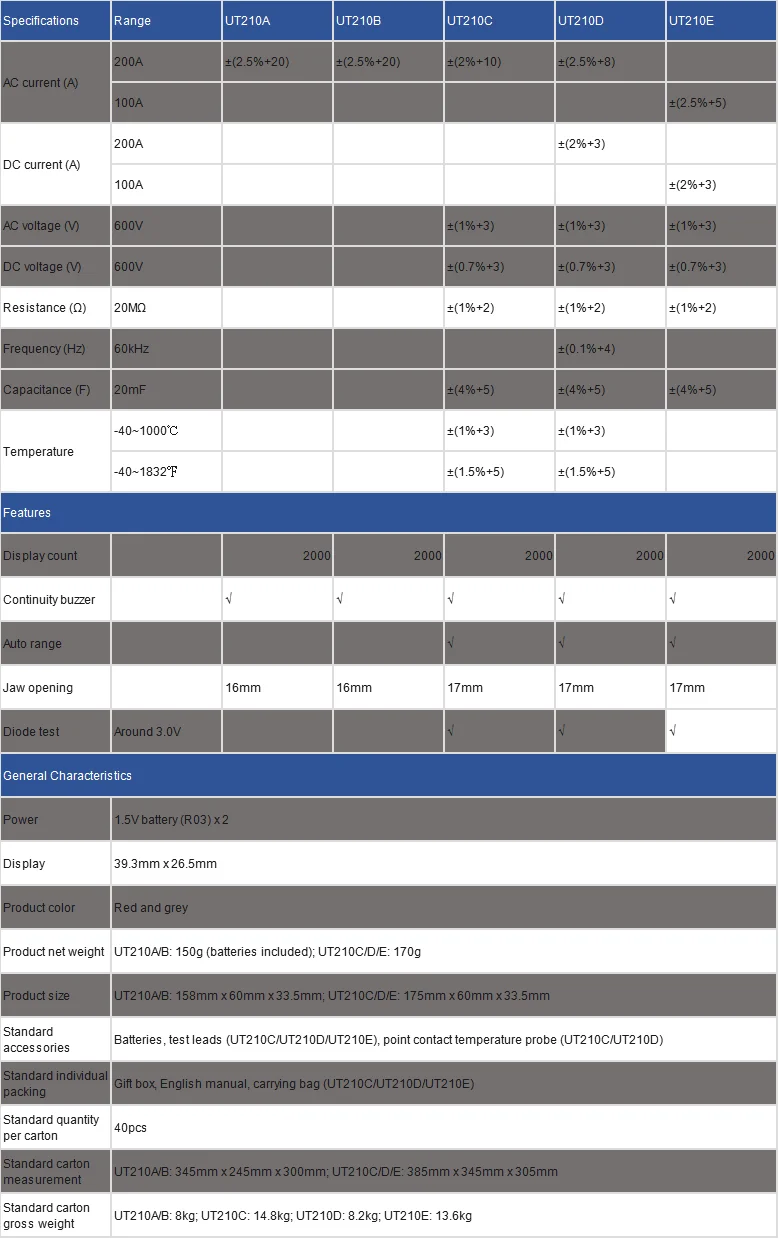 UT210E Mini Clamp Meter