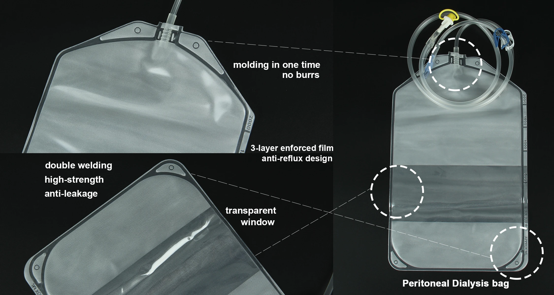 drainage products, main products including peritoneal dialysis bag, drainage tubes and drainage bags, Yankauer suction tubes and other medical components and finished products.