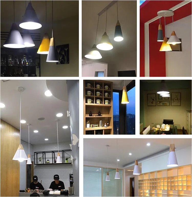 Pendant Lamp Modern E27 Pendant Lights Wood For Bedroom Hanging Lamp Nordic Aluminum Lampshade LED Bulb Kitchen Light