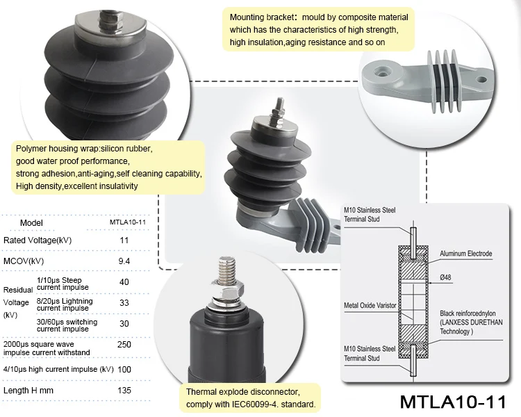 | Specification | Rated Voltage:11kv MCOV:12.7kv Rated Current:100/200A Breaking Current:10000A |