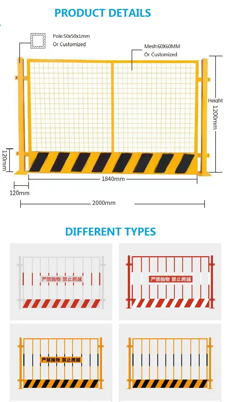 The Hard-Mesh Coverage Foundation Pit Border foundation pit fence guardrail is mainly used for the edge protection of thefoundation pit at the construction site, and can also be widely used in power distribution maintenance, electrical maintenance,traffic and other stop places. The color is mainly yellow and black or red and white. Special colors can be customized accordingto customer requirements.