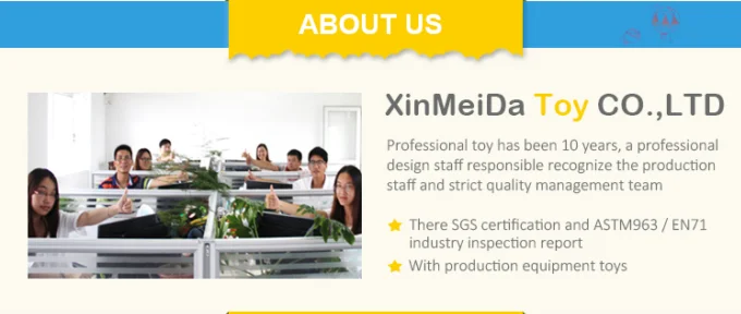 We have two production lines and more than one hundred staffs,we can supply OEM and ODM service to customer,all products pass European and American standard,we got EN71,and ASTM963 report, also got BSCI,DISNEY AUDITED certification,and we have own test house in our factory,each workmanship must be checked by QC.