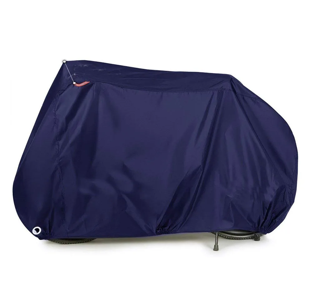 Advantage | 1.Easy On and Easy Off: wide tapered design for an easy fit over 29'' mountain bikes, beach cruisers, electric bikes&adult bikes with basket, baby seats or racks. 2.Reinforced top material for increased durability. 3.Taped seams for complete waterproof and reflective strips for more security. 4.Elastic front&back hems with quick release buckle to keep the cover from sagging and flapping in the wind. 5.Front air vents to eliminate condensation and corrosion and large front eyelets for locking your bike. | ||||||