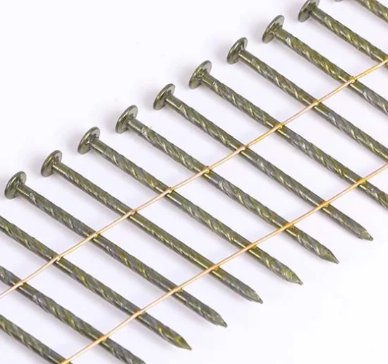Packed on pallets loaded in 20GP container. 40 boxes packed on a pallet, 24 pallets/20GP container. We use plywood pallet or fumigated wooden pallet to pack the coil nails. And use thick steel wire to prevent the pallets shift in container. From this way, it will be easy to load and unload the pallets by using forklift.