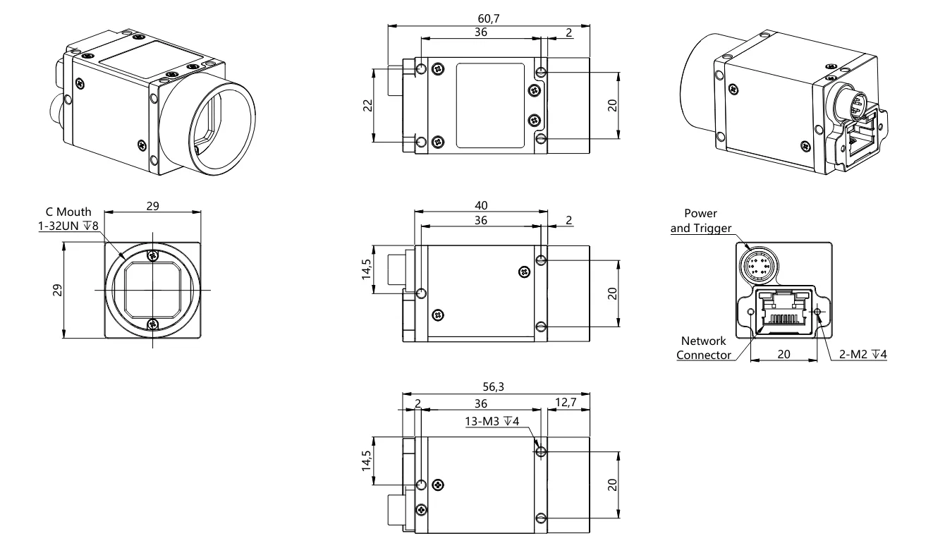 Other Functions | Support Image size (ROI), camera, exposure time, GAMMA, contrast, brightness, custom LUT, mirror flip, RGB color gain, saturation, sharpness, color to mono, color temperature correction, anti-color, Color,trigger mode, frame rate control | |