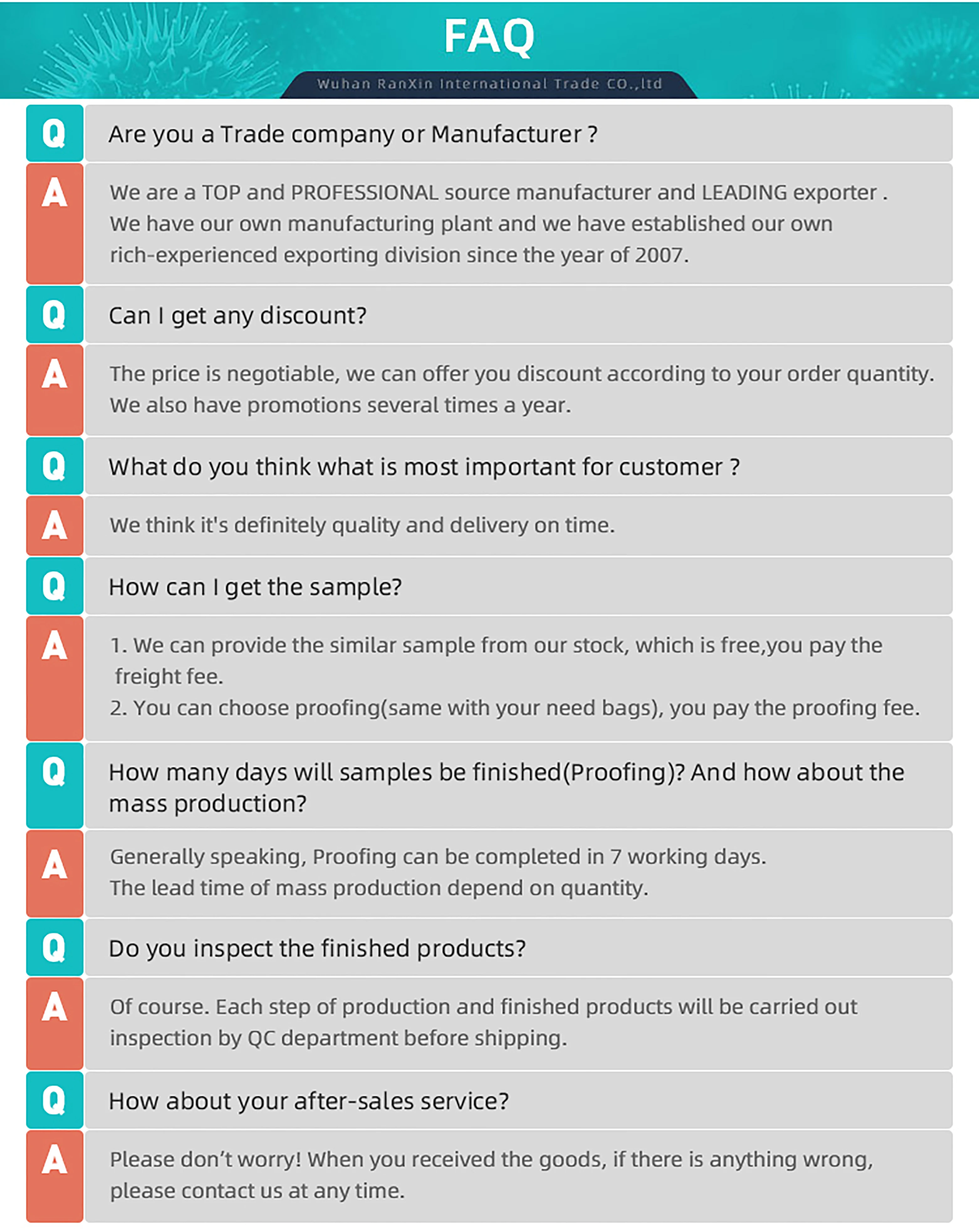 Package | 6 pcs/bag, 360 pcs/Medium bag, 2880pcs/ctn |