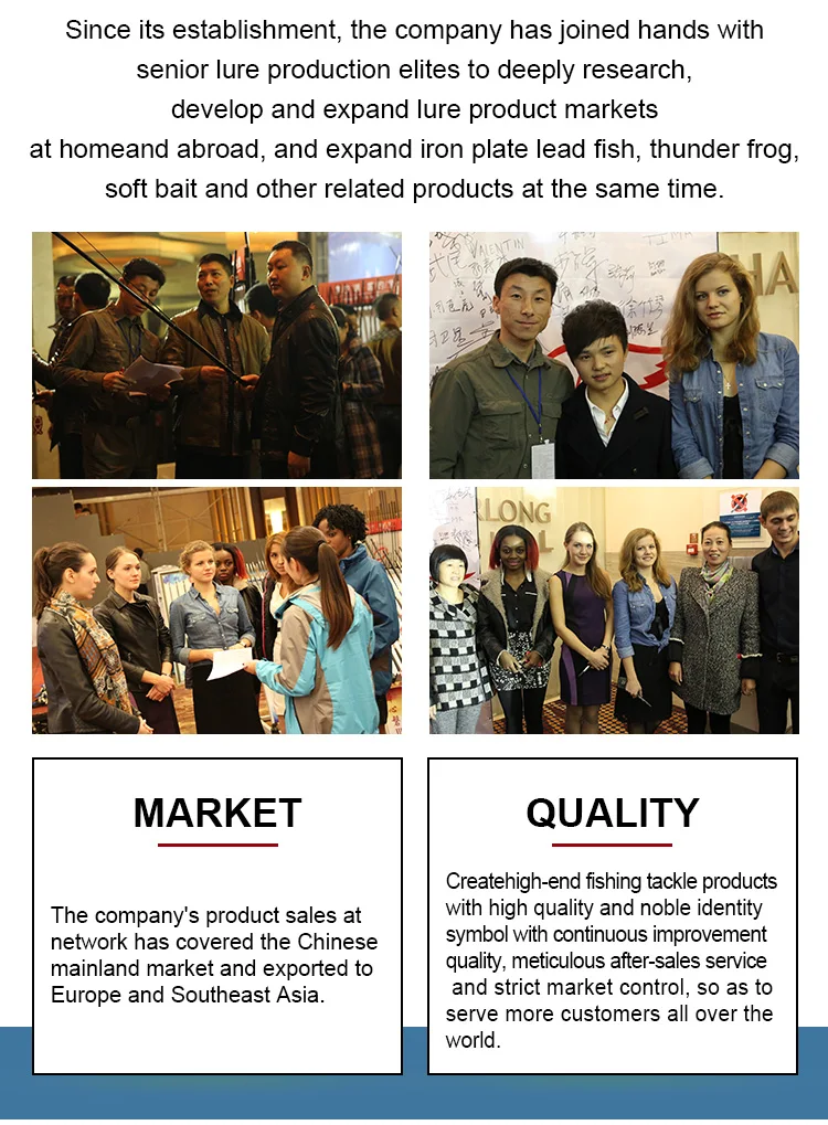1.Why I choose your company ? 1) We are professional fishing products supplier with great many years experience in fishing products field. 2) 100% quality inspection Before Shipment. Keep the mass production as the sample in high quality. 3) Best Quality & Best Service with Competitive price. 4) We offer the perfect after sale service. 5) Our aim is to achieve win-win. 6) Customized design, customized logo, OEM orders are all available and welcomed.