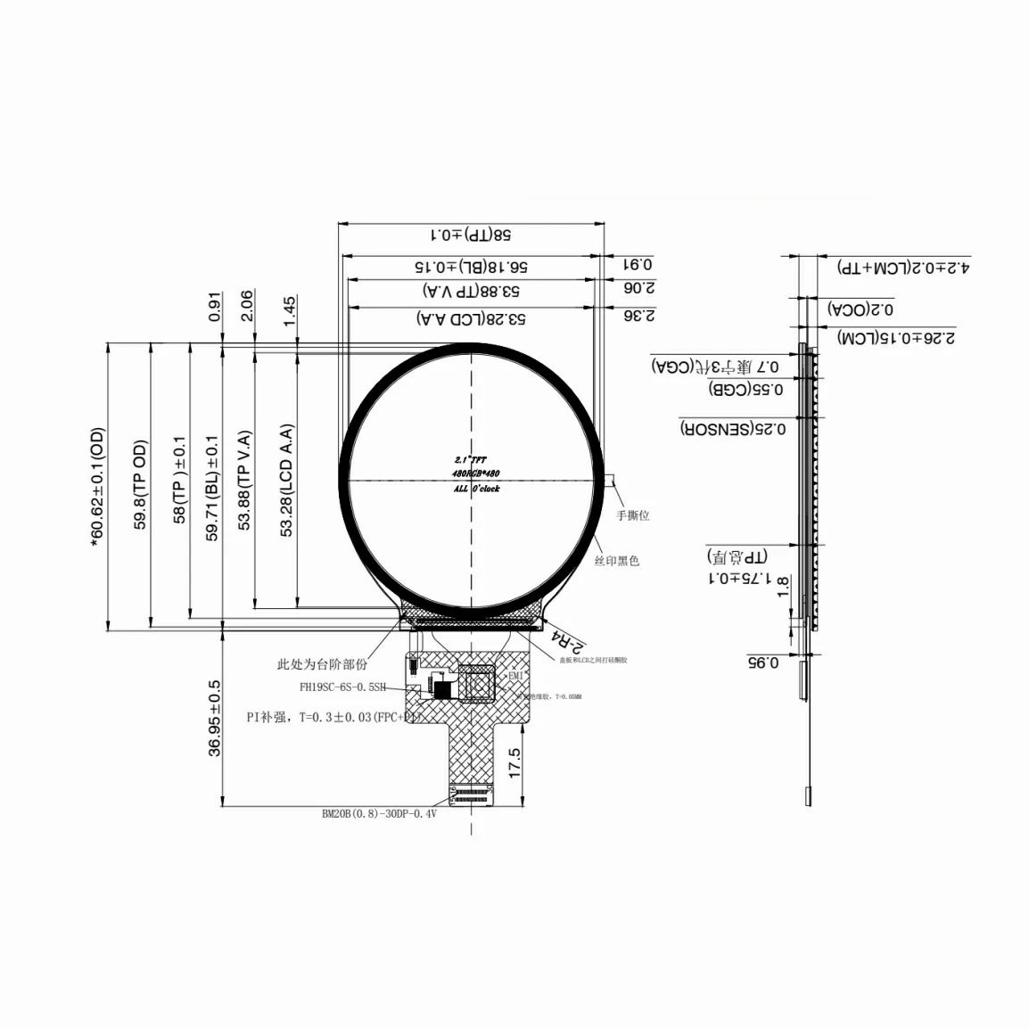2.4inch Color 2.8 Inch Round Panel Tft Lcd 480x480 Touch Screen Ctp Capacitive 30pin Mipi Display 21