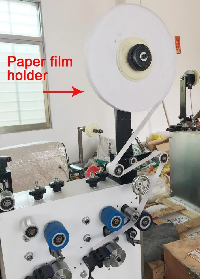 Step 1. install the Packaging paper or opp film onto the film Reeling holder;